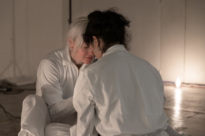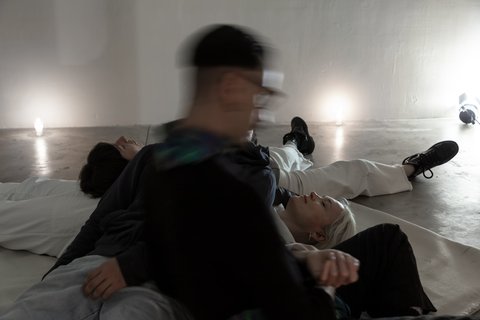 The dynamics of breathing, and thus the relationship between performers, present participants, and the physical setting, form the starting point for Dupont’s holistic performance. By including both material and ephemeral elements, I Breathe You, Do You Breathe Me? creates awareness of humankind’s interrelatedness.